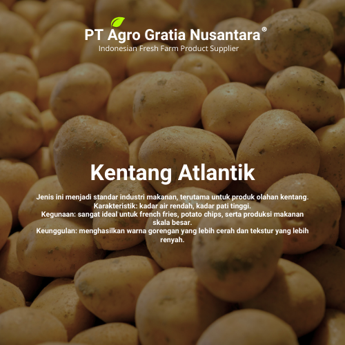 Butuh kentang segar dan berkualitas untuk kebutuhan rumah tangga atau bisnis kulinermu? PT AGRO GRATIA siap jadi partner kamu. Kami menyediakan kentang unggul — segar, bersih, dan terjamin distribusinya. Hubungi kami sekarang juga untuk pasokan kentang terbaik!”